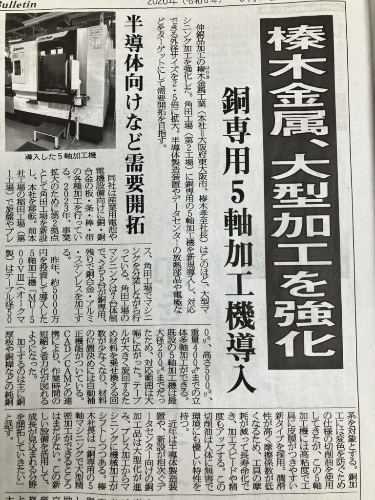 現在半導体向けやデータセンター向けの銅加工の引き合いを頂いております。